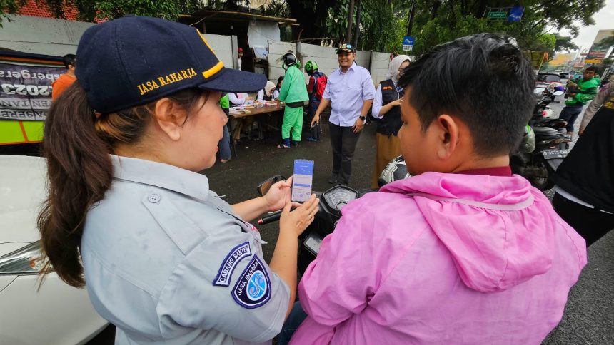 Tangerang, 28 Februari 2024 – Petugas Jasa Raharja Perwakilan Tangerang Cabang Banten, Samsat Cikokol Cinthya Rouwena melakukan giat pendekatan serta sosialisasi aplikasi SIGNAL kepada para pengendara kendaraan bermotor di sekitar wilayah Jl. Daan Mogot, Tangerang. Dalam kegiatan ini, petugas Jasa Raharja menyampaikan tentang peraturan pemerintah UU nomor 22 Pasal 74 Tahun 2009 dan mensosialisasikan pembayaran pajak secara online melalui aplikasi Signal (Samsat Digital Nasional) sekaligus Jaminan Asuransi Jasa Raharja kecelakaan lalu lintas.