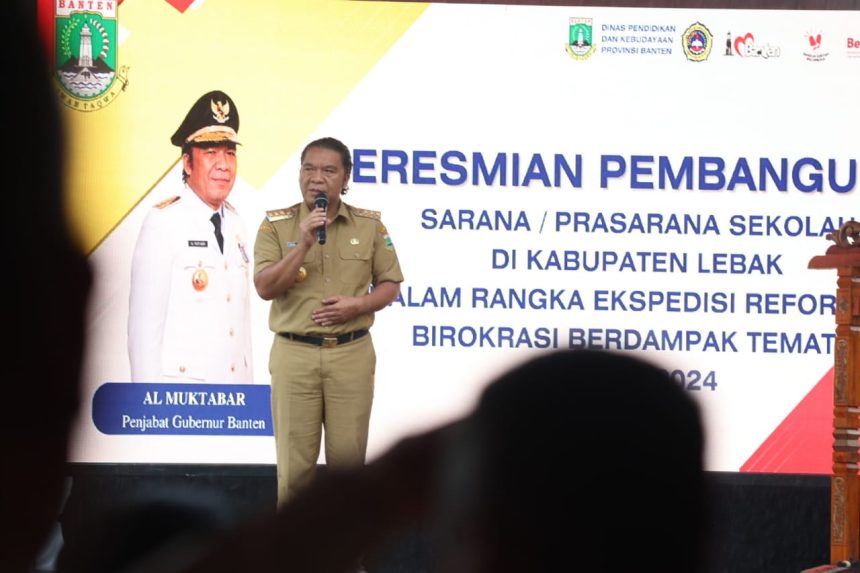 Lebak, Kabar Reformasi – Penjabat (Pj) Gubernur Banten Al Muktabar meresmikan 21 Sarana, Prasarana dan Unit Sekolah Baru kewenangan Provinsi Banten di Kabupaten Lebak. Peresmian secara simbolis dilakukan di SMK Negeri 2 Kecamatan Malingping, Kabupaten Lebak, Senin (5/2/2024). Peresmian itu merupakan bagian dari ekspedisi reformasi birokrasi tematik berdampak yang dilakukan Pemprov Banten di seluruh Kabupaten dan Kota.