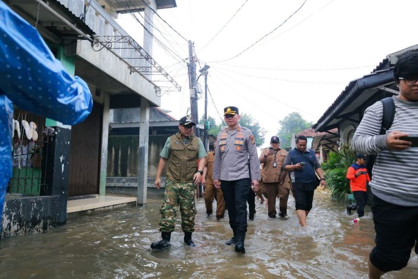 Wakil Wali Kota Tangerang Selatan Pilar Saga Ichsan turun langsung memantau lokasi banjir, dan melihat kondisi warga yang terdampak di Pondok Maharta di Kecamatan Pondok Aren pada Selasa (04/03/2025).