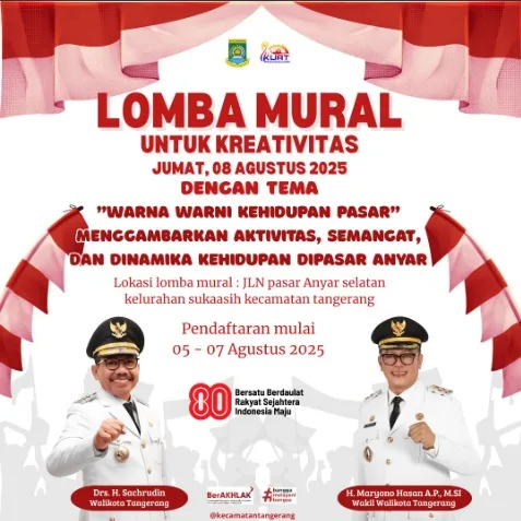 Kota Tangerang, Kabarreformasi.com – Pemerintah Kota (Pemkot) Tangerang menyemarakkan peringatan Hari Ulang Tahun (HUT) ke-80 Republik Indonesia dengan beragam kreativitas. Salah satunya, pendaftaran Lomba Mural Kemerdekaan Kecamatan Tangerang dibuka mulai 5-7 Agustus 2025.