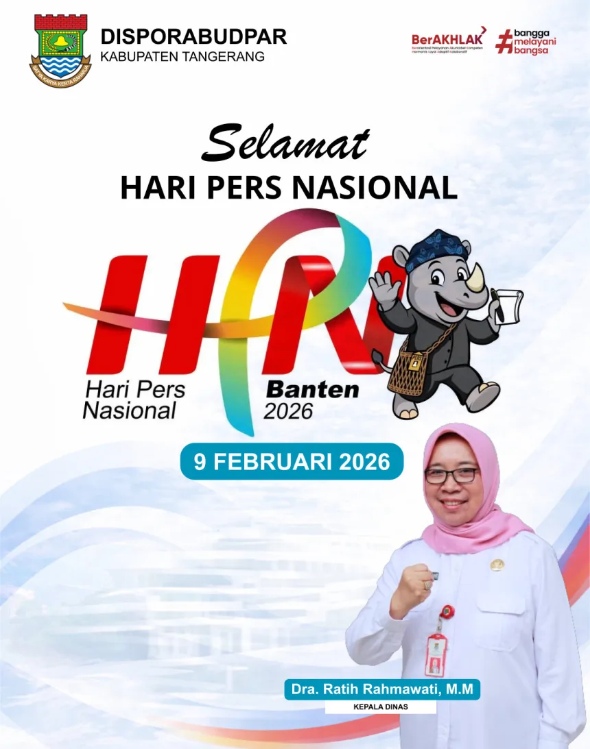 Disporabudpar Kabupaten Tangerang mengucapkan selamat memperingati Hari Pers Nasional 2026. “Pers Sehat, Ekonomi Berdaulat, Bangsa Kuat”.