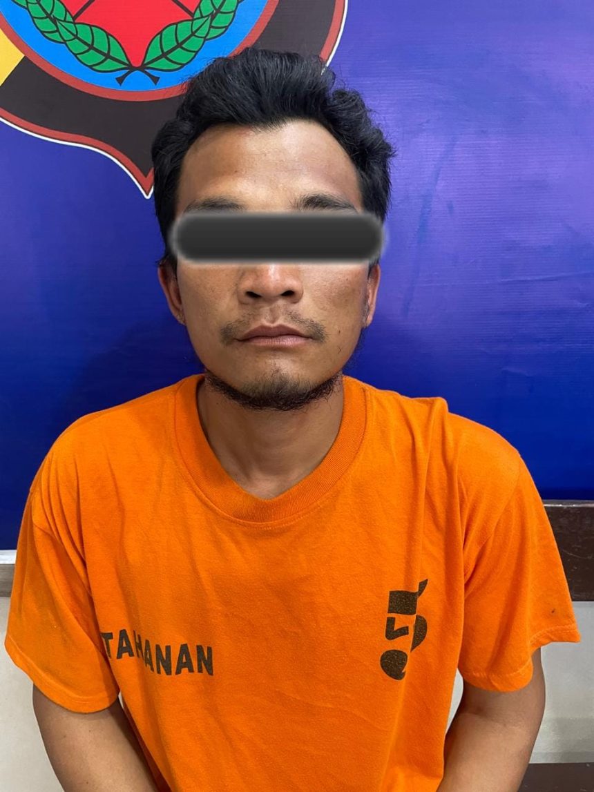 Polisi mengamankan sejumlah barang bukti dari tangan pelaku, di antaranya Tas sandang hitam merek Veteza, Handphone merek Realme, Dompet merek Eiger