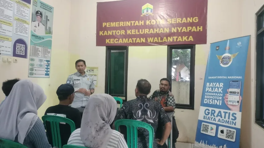 Serang,Kabarreformasi.com – Dalam upaya meningkatkan pelayanan kepada masyarakat serta mendorong kepatuhan pembayaran pajak kendaraan bermotor, Jasa Raharja Samsat Kota Serang melaksanakan kegiatan SIGAP Instansi dan sosialisasi aplikasi SIGNAL (Samsat Digital Nasional) di Kelurahan Nyapah, Kecamatan Walantaka pada Kamis, 12 Februari 2026.