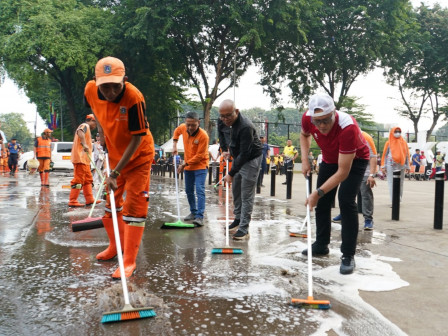 Wali Kota Administrais Jakarta Pusat, Dhany Sukma mengatakan, kerja bakti ini melibatkan 400 personel gabungan dari unsur PPSU, SDA, Bina Marga, Lingkungan Hidup, Satpol PP, Perhubungan, Pertaman dan Hutan Kota, serta pekerja sosial masyarakat.