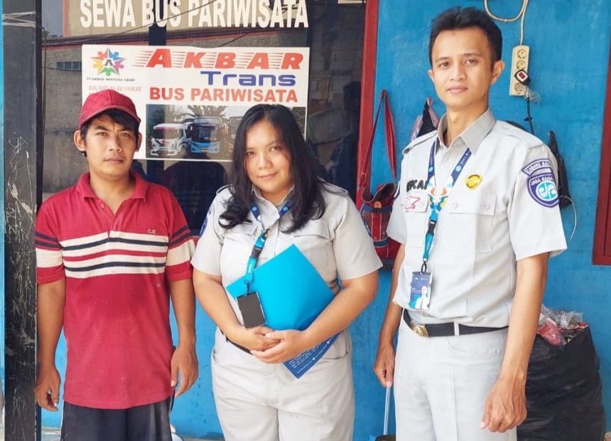 Tangerang – Petugas Samsat Gerai Curug dan Gerai Sepatan dibawah Samsat Induk Kelapa Dua, Nita Rosari dan Niskar Zega melakukan giat Customer Relationship Management (CRM) ke Perusahaan Jasa Angkutan Penumpang Bus Pariwisata Akbar Trans yang berdomisili di wilayah Legok, Kabupaten Tangerang