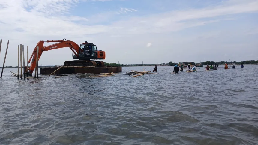 Untuk membantu pembongkaran sisa pagar laut itu, Pemprov Banten melalui DPUPR mengerahkan excavator long arm standar bersama ponton-nya. Hal ini untuk mengatasi kendala pencabutan sisa-sisa pagar laut yang sangat kuat dan cukup sulit untuk dicabut secara manual oleh tangan manusia.
