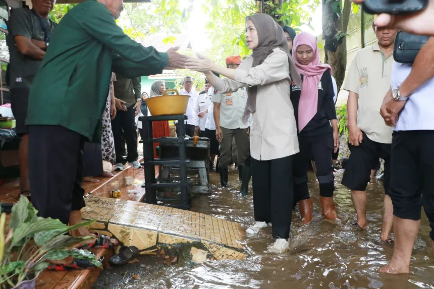Serang, Kabarreformasi.com – Bupati Serang Ratu Rachmatuzakiyah meninjau lokasi banjir di Kampung Mekarsari, Desa Margasari, Kecamatan Pulo Ampel, akibat tingginya curah hujan yang terjadi sejak Selasa, 17 Juni malam hingga Rabu, 18 Juni 2025 dini hari. Ratu Zakiyah tidak risih menerjang genangan air dengan ketinggian sekitar 15-20 sentimeter untuk menyapa warga korban banjir satu persatu.