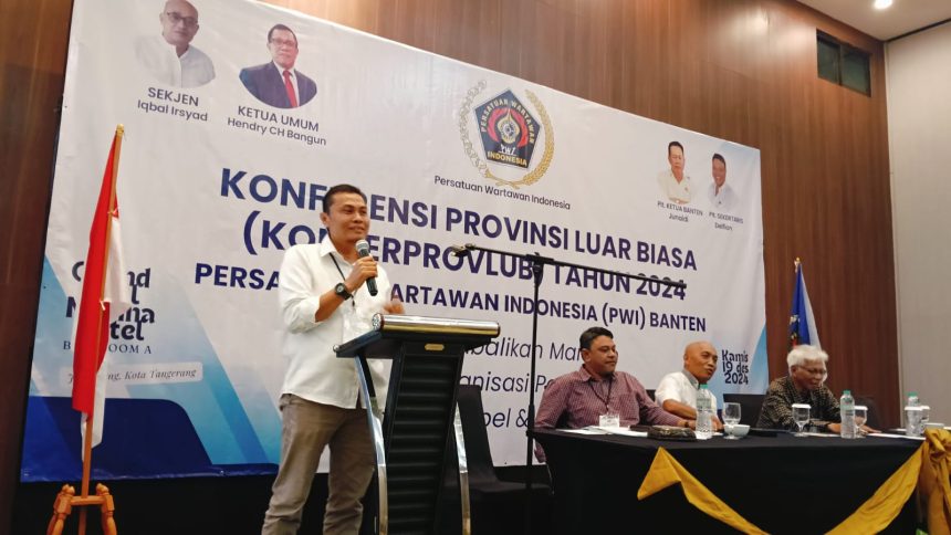 TANGERANG -Konferensi Provinsi Luar Biasa (Konferprovlub) Persatuan Wartawan Indonesia (PWI) Provinsi Banten resmi digelar di Hotel Soll Marina, Kota Tangerang, Kamis (19/12/2024). Kegiatan digelar setelah Pengurus PWI Pusat menunjuk pelaksana (Plt) Ketua PWI Provinsi Banten Edi Rusli.