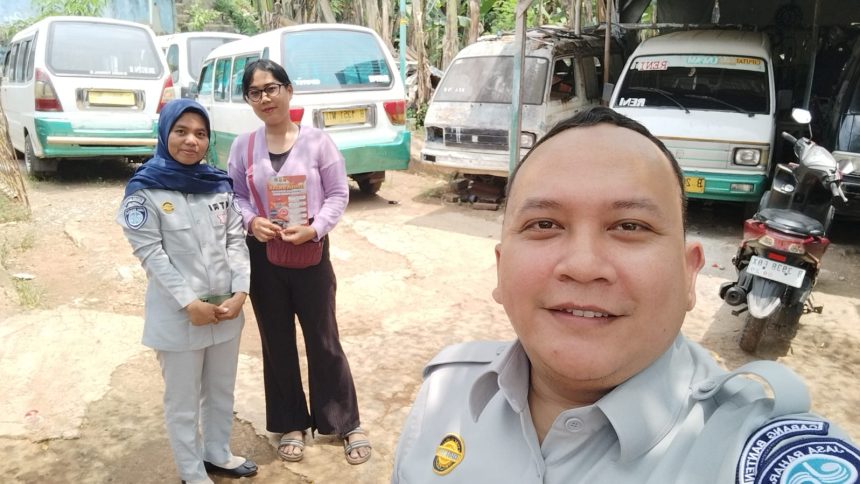 Tangerang, Sundapost.co.id – Petugas Jasa Raharja Tangerang Rama Adhitya dan Fitriani melakukan kegiatan intensifikasi penagihan IWKBU (Iuran Wajib Kendaraan Bermotor Umum) di wilayah Ciputat, Tangerang Selatan. Hal ini dilakukan untuk memberikan edukasi kepada pemilik kendaraan umum agar mengetahui kewajibannya membayar Iuran Wajib yang fungsinya adalah sebagai Dana Pertanggungan Wajib Kecelakaan Penumpang sekaligus mengingatkan manfaat Program Penghapusan Denda SWDKLLJ Tahun Lalu dan Tahun Tahun Lalu di Provinsi Banten yang sedang berjalan di samsat.