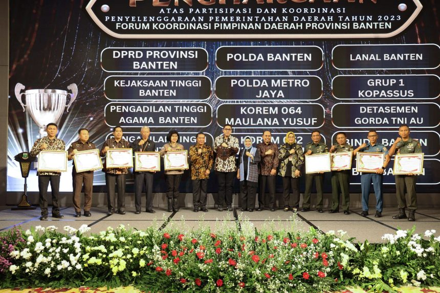Dalam kesempatan itu, Al Muktabar juga memberikan penghargaan atas partisipasi dan koordinasi penyelenggaraan pemerintah daerah tahun 2023 kepada Forkopimda Provinsi Banten, instansi vertikal di Provinsi Banten serta penghargaan khusus atas partisipasi dan kerjasama dalam pengamanan ketertiban lalu lintas di Provinsi Banten kepada Kasat Lantas Polres Serang AKP Tiwi Afrina.