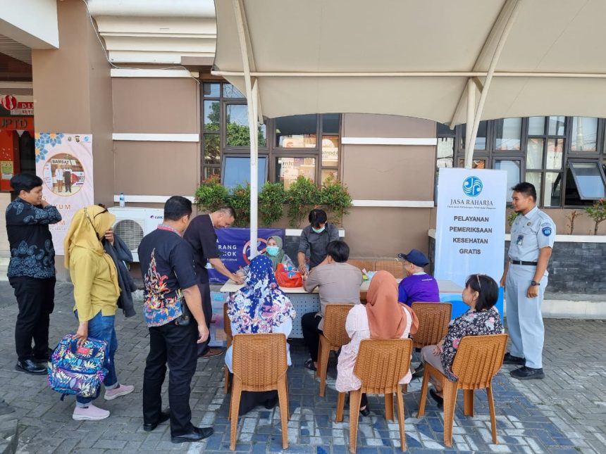 Kota Tangerang – PT Jasa Raharja Perwakilan Tangerang Cabang Banten mengadakan kegiatan pengobatan gratis bagi para wajib pajak di Samsat Ciledug, Jumat (22/09/2023). Kegiatan ini dilaksanakan sebagai wujud kepedulian Jasa Raharja terhadap kesehatan para wajib pajak, pegawai samsat dan masyarakat sekitar samsat.