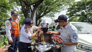 Kepala Bidang Dinas Perhubungan Tangerang Selatan beserta tim. Jasa Raharja Tangerang menugaskan 2 orang Personil dilapangan yaitu Dona Setyawan (Samsat Sangiang) dan Riska Amelia (Samsat Batuceper) untuk melakukan pengecekan langsung masa berlaku SWDKLLJ & IWKBU kendaraan yang terjaring kami berikan himbauan agar segera menyelesaikan kewajiban membayar PKB serta SWDKLLJ kendaraan miliknya.