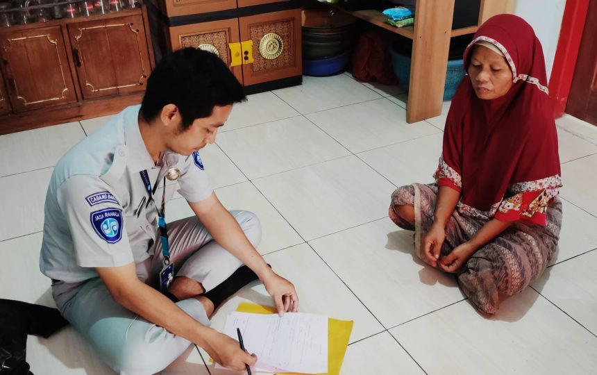 Kedatangan Petugas Jasa Raharja Samsat Maja diterima langsung oleh Istri korban yaitu Anah. Kedatangan tersebut dalam rangka pelayanan jemput bola guna mempercepat proses penyelesaian santunan. Pada kesempatan tersebut Abi juga menyampaikan ungkapan bela sungkawa atas musibah yang terjadi.
