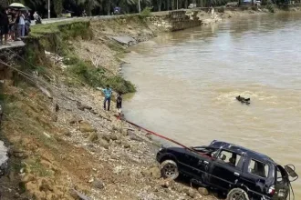 Rombongan Dari Kabanjahe Gagal ke Ekowisata Tangkahan,Mobil Mereka Terjun Ke Sungai Batang Serangan