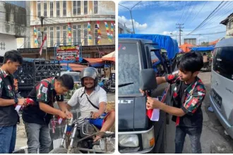 Sambut HUT RI ke 80, SAPMA LMP Tanah Karo Bagikan Bendera Merah Putih di Kabanjahe